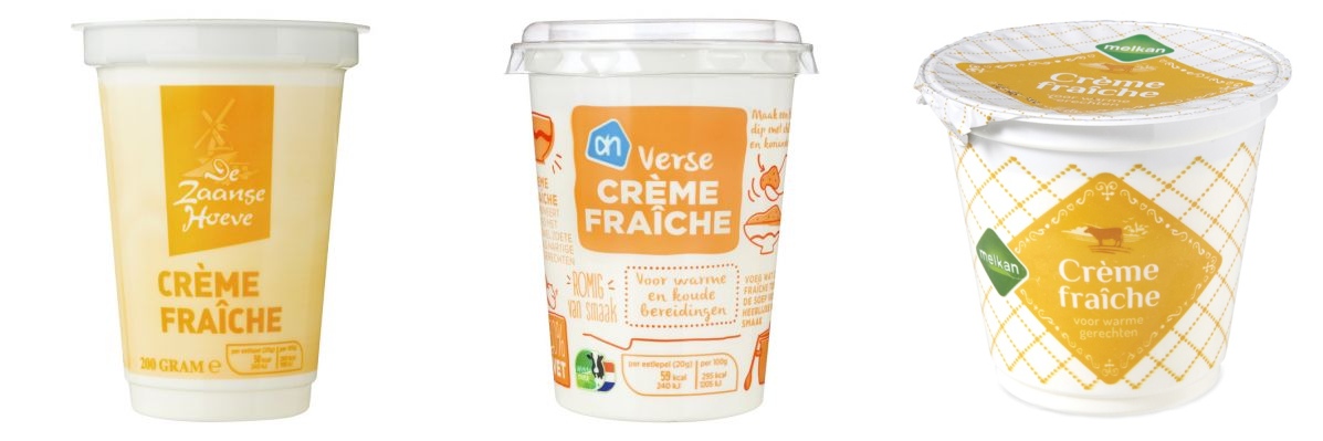 Crème fraiche is een lichtzurig zuivelproduct. Het vetpercentage ligt boven de 35 %. Dat betekent dat het gebruikt kan worden in warme gerechten zonder te schiften. Dit in tegenstelling tot zure room, dat gebruik je alleen in koude gerechten. Zure room heeft een vetpercentage van 20% en gaat schiften in warme gerechten. Je vindt beide producten in het zuivelschap bij de slagroom.