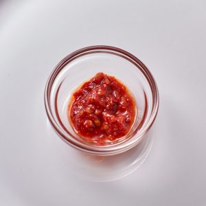 Geroosterde puntpaprika’s hebben een wat zoetige smaak. Verse paprika’s kun je roosteren in de oven of op open vuur. Dat is wel even een klusje, dus het is heel fijn dat die geroosterde paprika’s ook in pot verkrijgbaar zijn. Giet ze af, spoel ze onder de kraan, schraap de zwarte velletjes eraf en gooi die weg. Pitjes mogen ook weg.